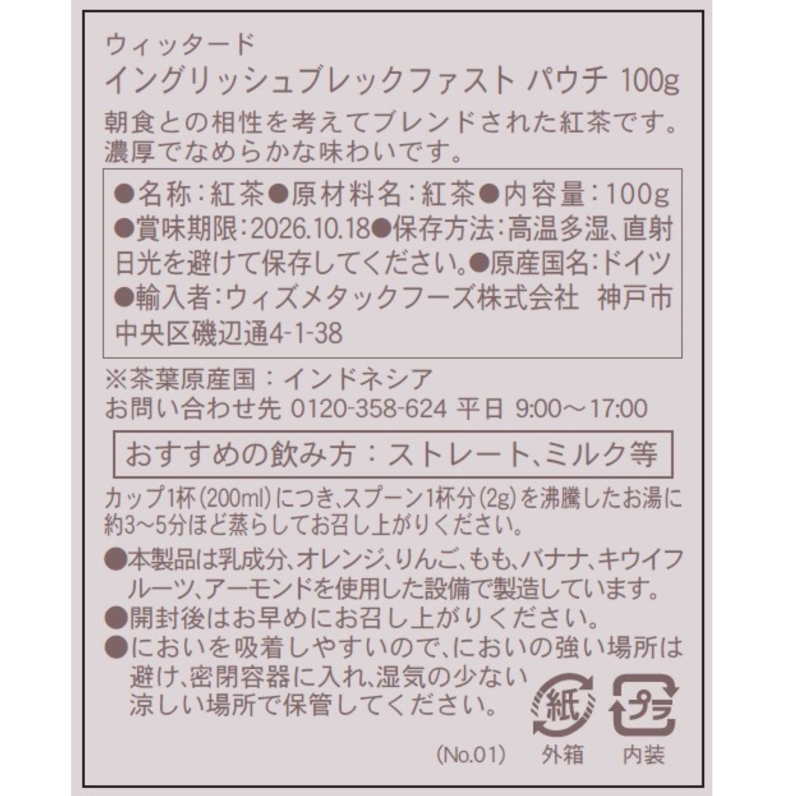 ウィッタード イングリッシュブレックファスト パウチ 100g