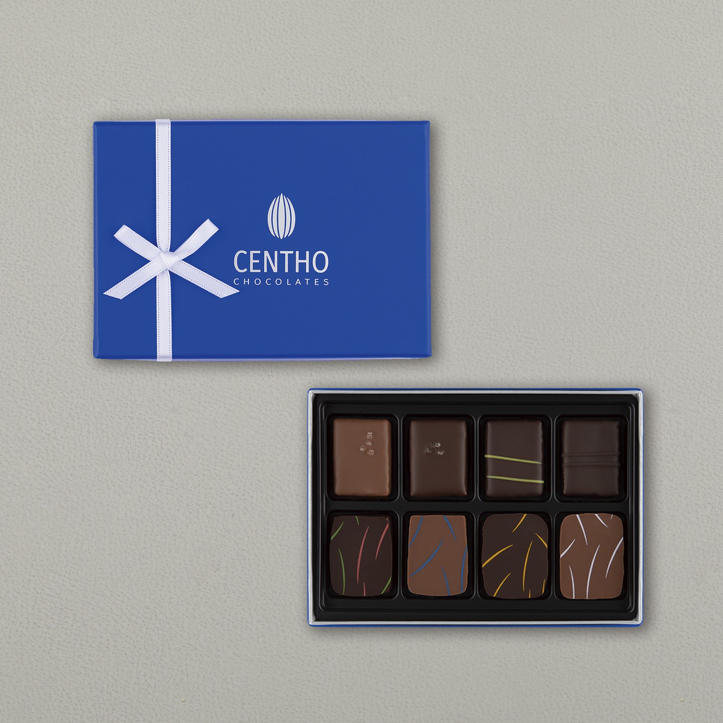 それぞれのカカオと相性のよいフルーツジャムとのペアリングを楽しめる「フラゴラ」「ブラックベリー」「アプリコット」「パッションフルーツ」の3層仕立ての4粒と、代表粒の「塩キャラメル」はもちろん、塩キャラメルチョコレートとピスタチオプラリネを二層にした2026年の新粒「ピスタルダ」など個性豊かなキャラメルチョコレート4粒をアソートしました。カカオの味を引き立たせるこだわりのガナッシュと、セントー自慢のキャラメルチョコレートの両方を堪能できるセレクションです。