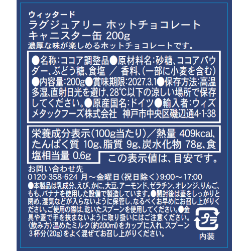 【2025 クリスマス】ウィッタード ラグジュアリーホットチョコレート キャニスター缶 200g