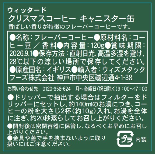 【2025 クリスマス】ウィッタード クリスマスコーヒー キャニスター缶 120G