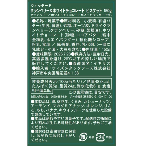 ウィッタード クランベリー&ホワイトチョコレートビスケット 150G