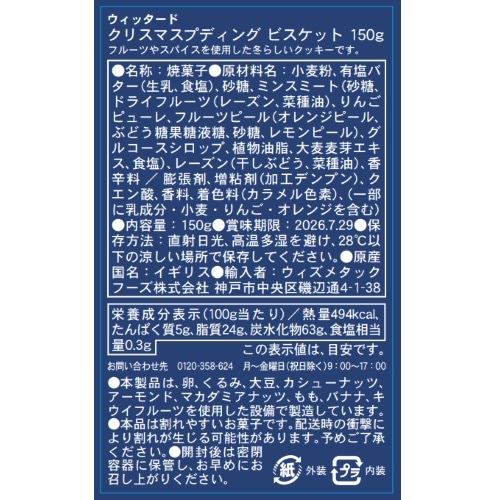 【2025 クリスマス】ウィッタード クリスマスプディングビスケット 150G