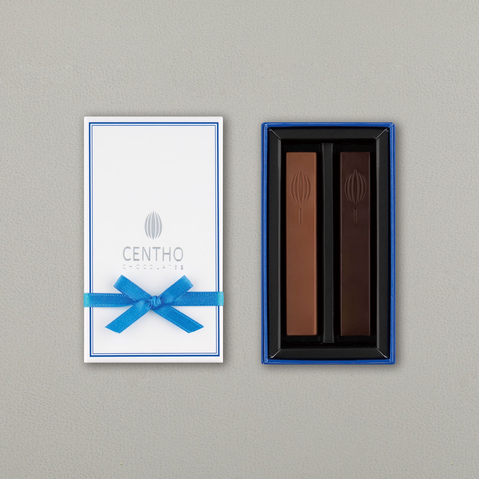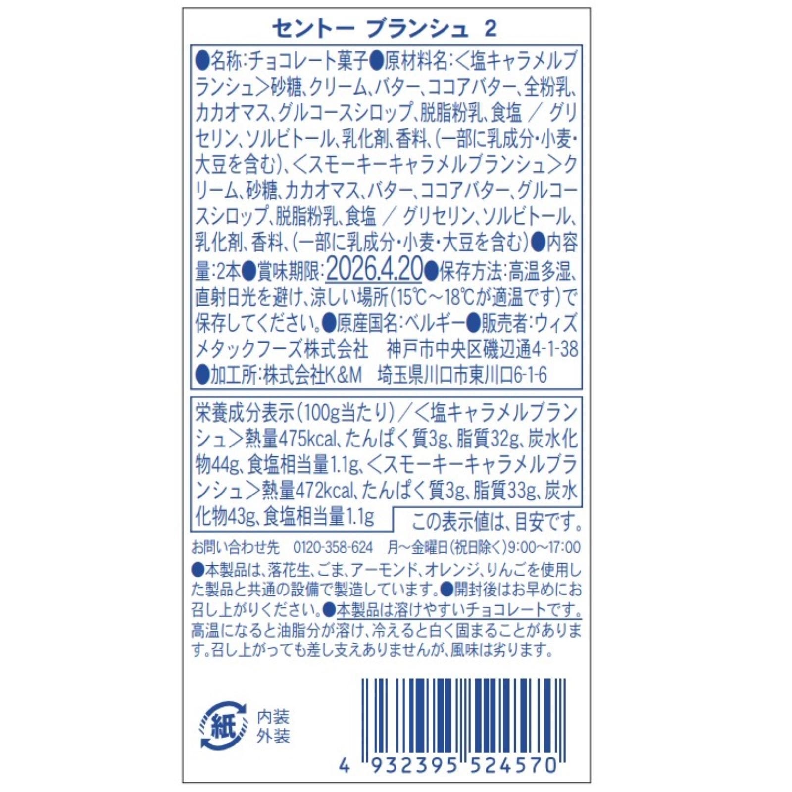 セントーのロゴマークであるカカオがデザインされた「ブランシュ」2本入りアソートBOXです。