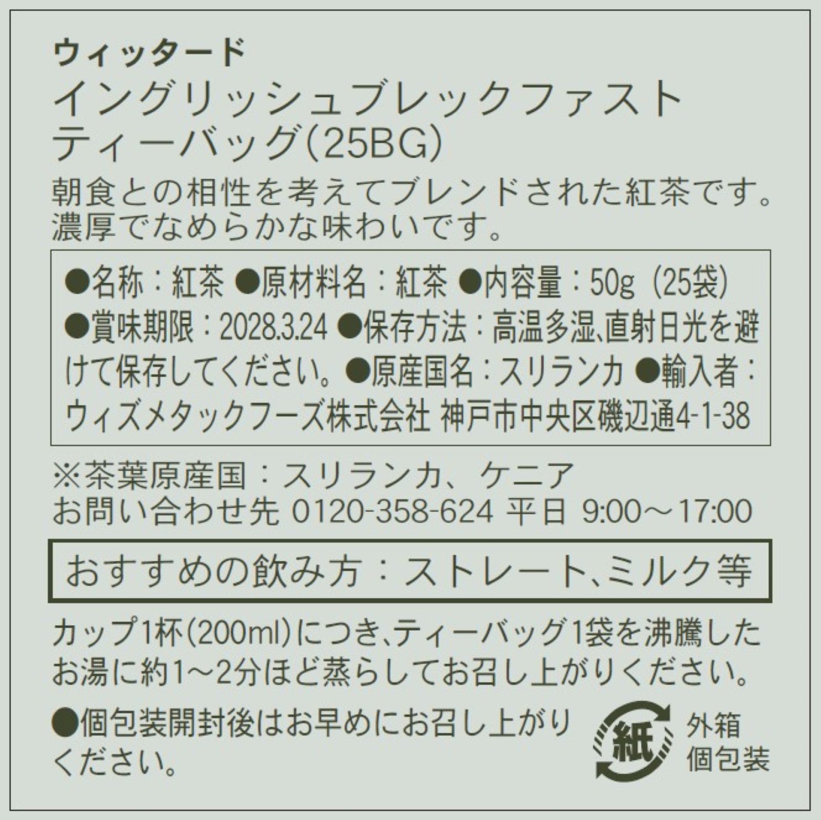 ウィッタード イングリッシュブレックファスト ティーバッグ 25BG